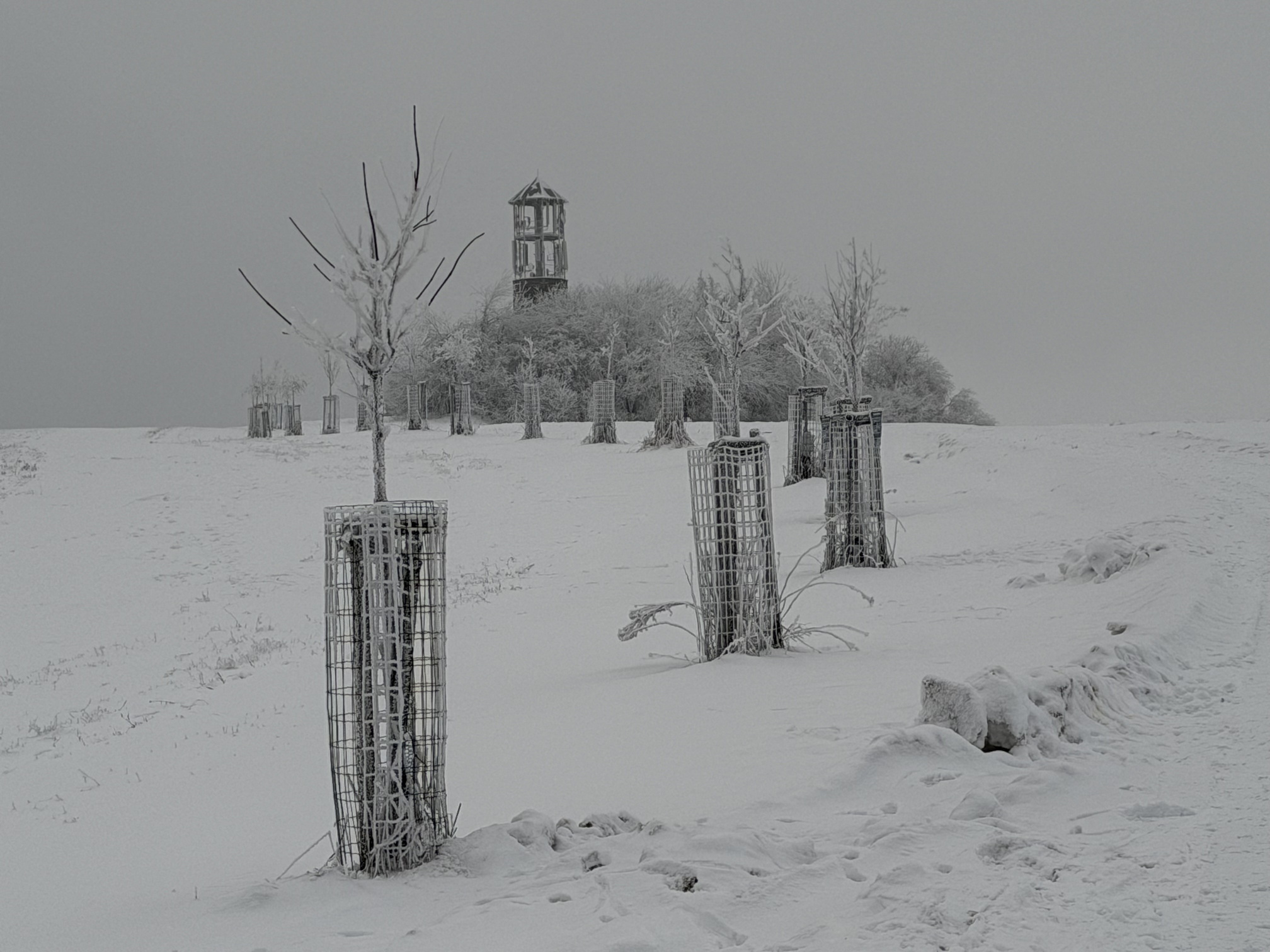 Winter black and white Vítova Lookout tower